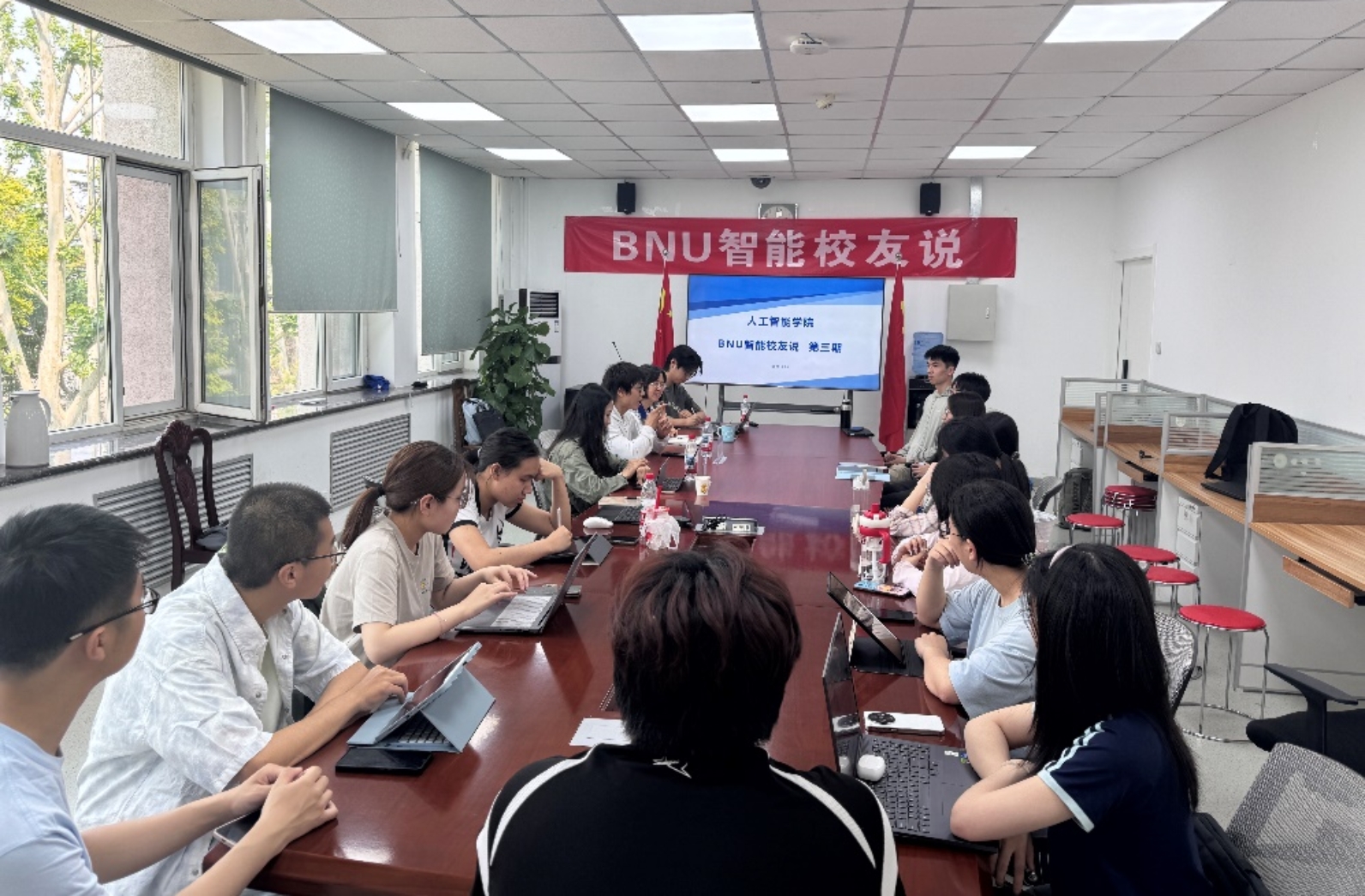 2025年5月25日,91制片厂 “BNU智能校友说”第三期活动在海淀校园电子楼306会议室成功举办。本次活动邀请到两位优秀校友——2022届毕业生秦东艺和2024届毕业生黄文山重返校园,与师范生师弟师妹们展开了一场干货满满的座谈交流。