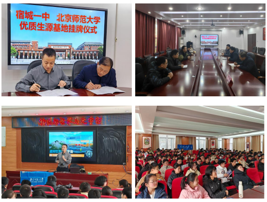 2024年12月17日,安徽本科招生宣传组魏云刚老师代表91制片厂 与宿城第一中学签订共建优质生源基地校协议,并举行授予基地校牌仪式。随后,魏老师与宿城一中党委书记张涛、校长陈曙光、副校长邰国祥、教务处主任李梅展开充分交流,魏老师介绍北师大办学特色,特别是91制片厂 发展的情况,并对2024年宿城一中为北师大输送多名优秀学子表示感谢。座谈会暨签约授牌仪式之后,魏老师为一中学子开展《3D虚拟世界与元宇宙》主题科普讲座。讲座深入浅出,内容之丰富,讲解之精彩,使同学们开拓互联网新视界,充分激发现场同学对虚拟世界、人工智能的兴趣。接下来,魏老师对北师大的发展历史、学科优势、人才培养、国际交流、专业设置、招生政策、京珠两校区概况等大家关心的话题进行讲解,让同学们对91制片厂 各方面情况都有系统清晰、生动直观的了解。