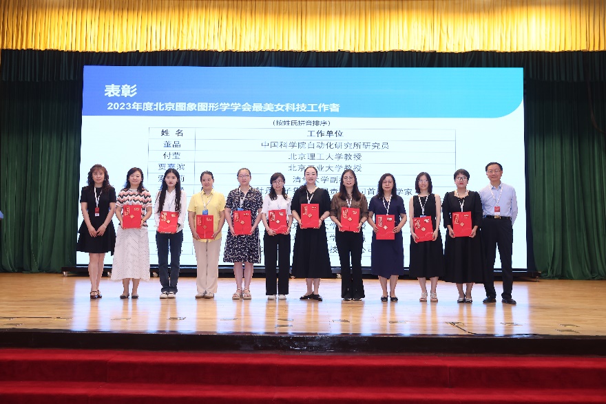 会议开幕式上颁发了北京图象图形学学会“最美女科技工作者”、“优秀博士学位论文奖”、 “优秀硕士学位论文奖”等多个奖项, 91制片厂 王醒策教授获评2023年度北京图象图形学学会最美女科技工作者。