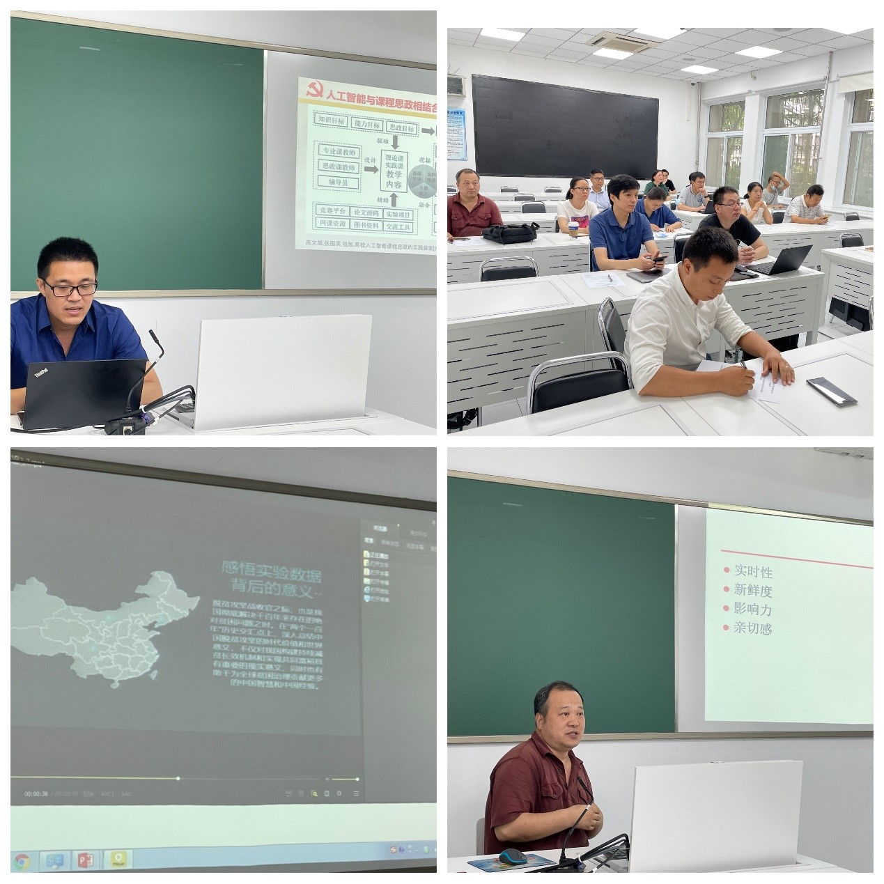 此次会议共有20名老师在现场参会,三位汇报人讲解完,与会老师们展开了热烈的讨论,从AI专业课程思政建设的难点,探索如何建设有专业特色的课程思政,如弘扬大国“工匠精神”,培养社会主义“新工科”人才。老师们普遍认为,专业课程与课程思政的有机结合是我们目前工作的重点,同时,面对建设中的困难,比如如何找准思政元素的落点,还需要更多的专业指导及交流。