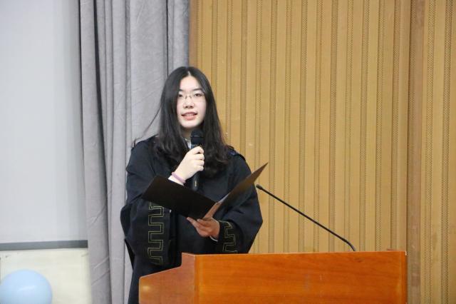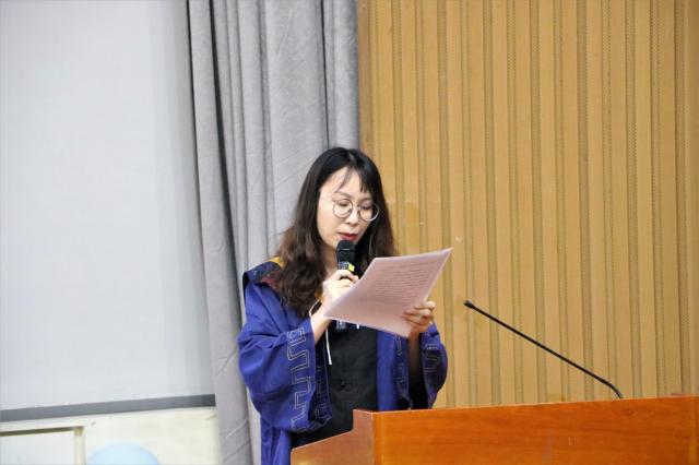 全体师生共同奏唱国歌后,毕业典礼正式开始。王学松老师介绍了研究生和本科生的学习及就业情况,毕业生整体就业情况较好,就业质量高。与会领导为优秀毕业生颁发荣誉证书,杨学玉老师表示,希望同学们传承红色基因,厚植家国情怀,成为担当民族复兴大任的时代新人。本科生毕业生代表郑若卉和研究生毕业生代表石丽娜介绍了自己的学习生活经历,也表达了对于即将毕业离开这所学校的同学们的希望与祝福,号召同学们带着“学为人师,行为世范”的理想,时刻怀揣一颗赤子之心,书写人生的绚烂。吴昊老师讲述了自己对于这届毕业生的真挚感情与分别的不舍,同时也表达了对同学们的殷切期望,祝福他们前程似锦。姚力院长勉励毕业生们要成为有担当、有责任的人,一方面,要有理想、有信念,争当国家的栋梁之材,让中华民族伟大复兴的底色更浓;另一方面,要脚踏实地、砥砺奋斗,要对自己和家人负责,用才能和成就回馈社会。