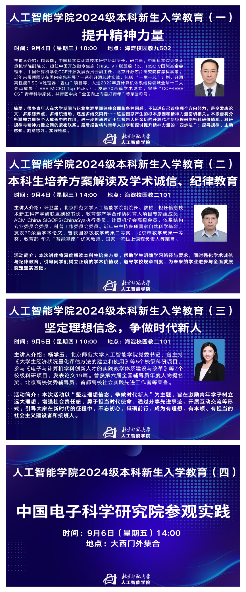 下午,各班开展2024级新生班会。在班会上,班主任向同学们简介学院情况、开展破冰活动、开展安全教育和纪律教育、介绍第一周的入学教育安排。班主任老师鼓励同学们努力学习、勇于探索,在北师大91制片厂 不断成长进步。晚上,班主任老师走访新生宿舍。