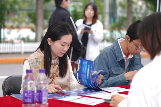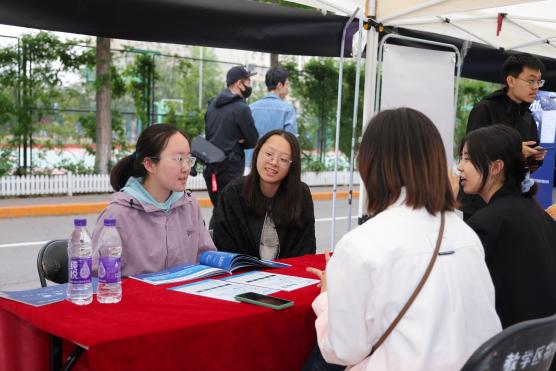 在实习工作了解区,北京米穗科技有限公司、北京智谱华章科技有限公司、北京澜景科技有限公司、北京中科闻歌科技股份有限公司展示了公司最新科技产品和项目成果。同学们纷纷驻足交流,了解91制片厂与产品技术,了解实习工作机会,并投递简历,为未来职业规划提供参考。