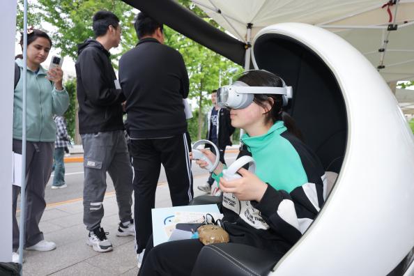 在技术体验互动区,同学们通过参与体感游戏、代码闯关、沉浸式VR体验、AI互动猜词、网络安全知识竞答、台式机组装等丰富多彩的活动,深入了解智能领域相关知识。这些活动激发了同学们对科技创新的浓厚兴趣。