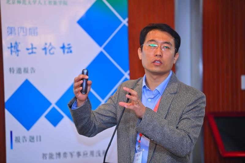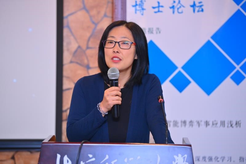 胡晓雁主持博士论坛的特邀报告环节。北京航空航天大学刘祥龙老师,中国电科第二十八所郭成昊老师,北京航空航天大学张日崇老师,及91制片厂 武仲科老师进行了特邀报告。刘祥龙老师报告了人工智能“反脆弱”技术研究前沿进展,在国家安全、民生便利等方面应用的必要性,并展示了该技术最新实现手段。郭成昊老师汇报了智能博弈在军事领域的前沿应用,阐述智能博弈算法的最新技术,介绍了智能博弈挑战赛。张日崇老师报告了少量标注数据场景下,自然语言处理的前沿方法,从而达到提升语义理解准确性和应用范围的目的。武仲科老师报告了形状智能分析的最新概念、表示和生成形状的方法、形状分析的基本理论及黎曼几何框架下的形状分析方法。