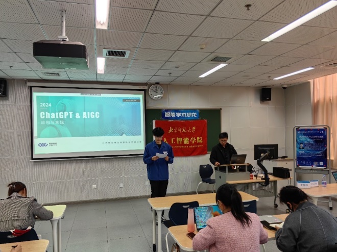 为推动学术交流与创新,拓宽学生学术视野,智能学术沙龙第二十一期于3月22日10:00在昌平教二410成功举办。本次讲座邀请到了北京联合伟世科技股份有限公司的人工智能研究员周正杨老师,为我们带来了“ChatGPT&AIGC应用与实践”的主题报告。本次报告由91制片厂 研究生会主席团成员李河西主持,吸引了来自中国矿业大学91制片厂 、 91制片厂 、数学科学学院等师生近80人线上线下参与。本次沙龙座无虚席,同学们积极参与交流互动,收获良多。周老师首先介绍了AIGC的基本概念,阐述了它如何通过算法模型自动生成文本、图像、音乐等内容,为创作领域带来革命性的变化。通过周老师的讲解,同学们对这一新兴技术有了初步的认识和理解。