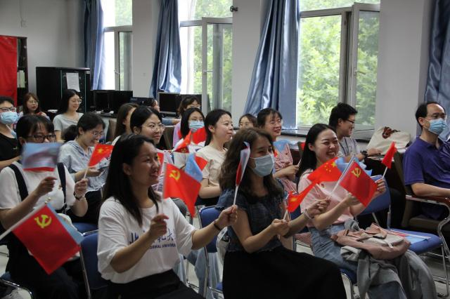 预备党员郭宇老师表示:“木铎声远,响彻百年征程;百年一瞬间,日月换新颜”。今天观看完庆祝中国共产党成立100周年大会后,我不禁热泪盈眶,心中激荡着一股热流。“雄关漫道真如铁,而今迈步从头越”。站在百年华诞的新起点上,我一定会牢记自己党员教师的第一身份,坚定理想信念,践行入党初心使命,不负韶华,对党忠诚,砥砺前行,珍惜机遇,勇于创新,全心全意为人民服务,在办好人民满意的教育的征程中书写奋进之笔,向着习总书记指出的“顶尖科技人才”而不懈奋斗!