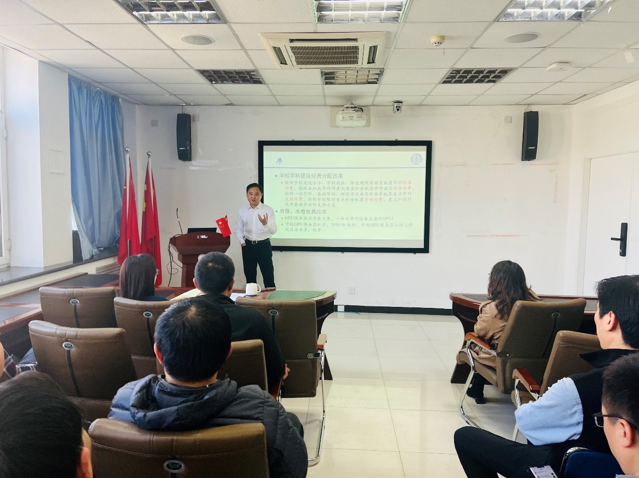 会议还对学院空间资源短缺、薪酬待遇等问题进行了说明。交流环节,教师们结合国际合作、交叉学科等进行了充分交流与讨论。