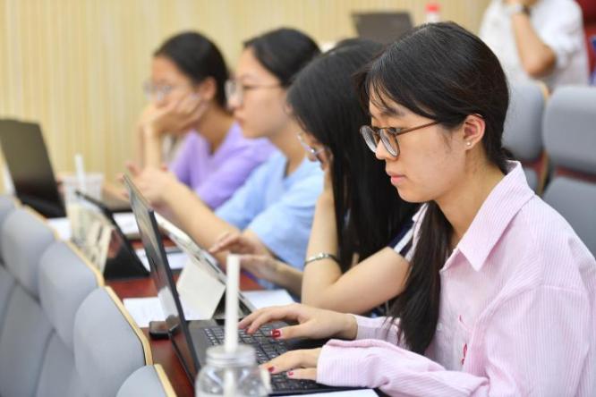 接着,进行线上结课测试。测试内容围绕昇思MindSpore,旨在检验同学们的学习效果,帮助其及时巩固技术要点,为后续将框架应用于赛事或科研项目奠定基础。现场和线上的同学们专注使用设备答题参与,展现了良好的学习风貌。