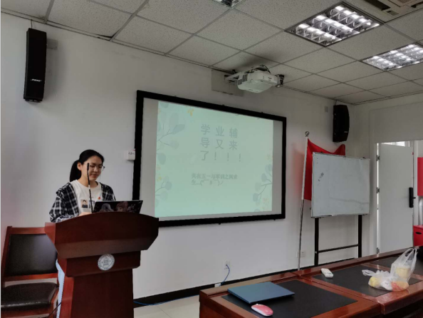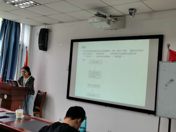图一:学习委员向同学们介绍大学生科研的分类,流程等相关事宜