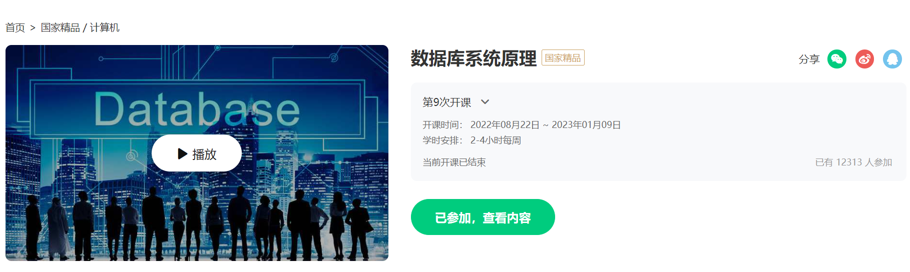 首批国家级一流本科课程《数据库系统原理》,2020.11